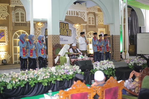 “Barang siapa yang membaca Kitab Burdah dengan ikhlas dan penuh semangat, insyaallah daerah tersebut akan aman dan terhindar dari musibah,” ungkap KH Taufiqul Hakim di hadapan para wisudawan dan wali santri.