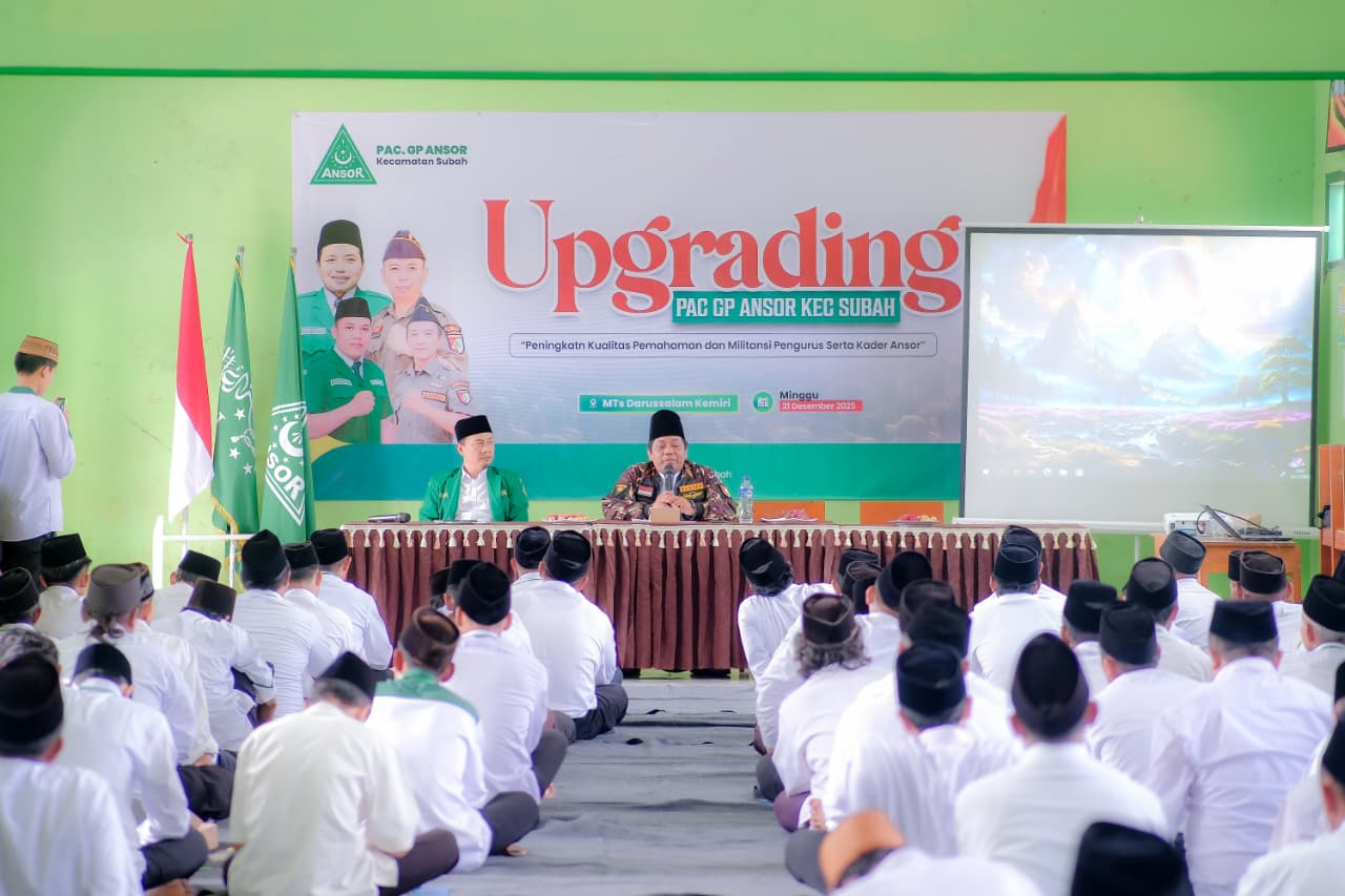 Pimpinan Anak Cabang (PAC) Gerakan Pemuda (GP) Ansor Subah menggelar kegiatan upgrading Kader sebagai upaya meningkatkan kualitas sumber daya manusia serta memperkuat pemahaman kader terhadap nilai-nilai keorganisasian dan ke-NU-an, Minggu, 21/12/2025.