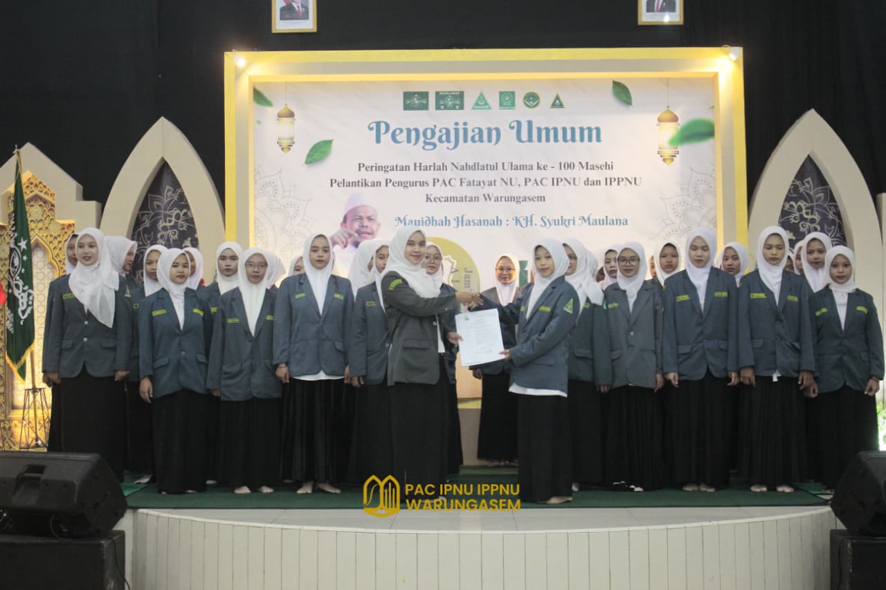 Pimpinan Anak Cabang (PAC) Fatayat NU, IPNU, dan IPPNU Kecamatan Warungasem resmi dilantik dalam satu rangkaian kegiatan peringatan Hari Lahir (Harlah) Nahdlatul Ulama (NU) ke-100 tahun Masehi. Pelantikan tersebut digelar di Gedung MWC NU Warungasem, Kamis (15/1/2026).